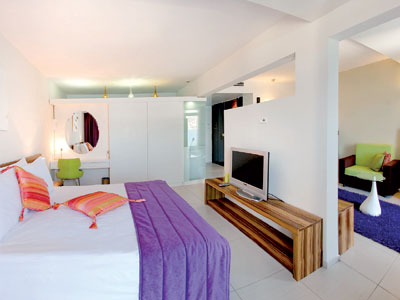 44 комфортабельных номера (20 м2) с прямым видом на море (4-й и 5-й этажи). Максимально допустимое размещение – 2+1 человек.