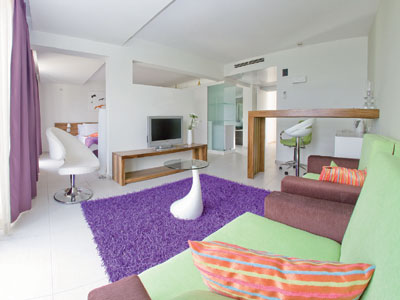 4 уютных номера с зоной гостиной и спальни (35 м2), с видом на море и двумя балконами. Максимально допустимое размещение – 2+2 человека.